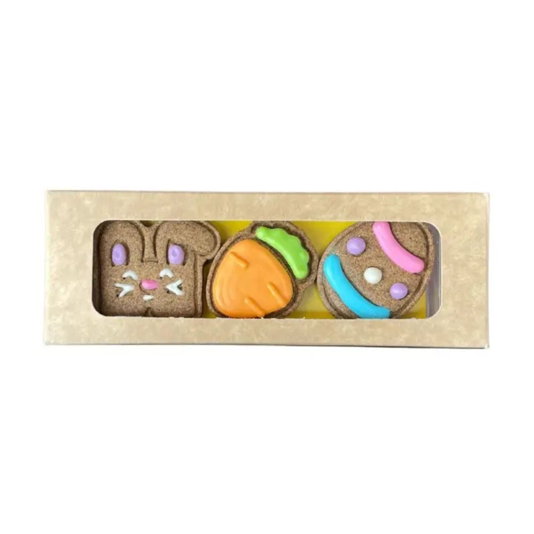 The compact size of the Easter dog cookies makes them the perfect Easter doggie gift. Thoughtfully designed with a Bunny, Carrot and Easter Egg they offer both style and practicality, plus they are a delightful seasonal surprise without being oversized or overwhelming. Each set is beautifully presented in a charming mini gift box, making it ready to gift—no wrapping required. Whether you’re creating an Easter hamper, spoiling your own pup, these adorable Easter eggs add a touch of festive luxury to any celebration.